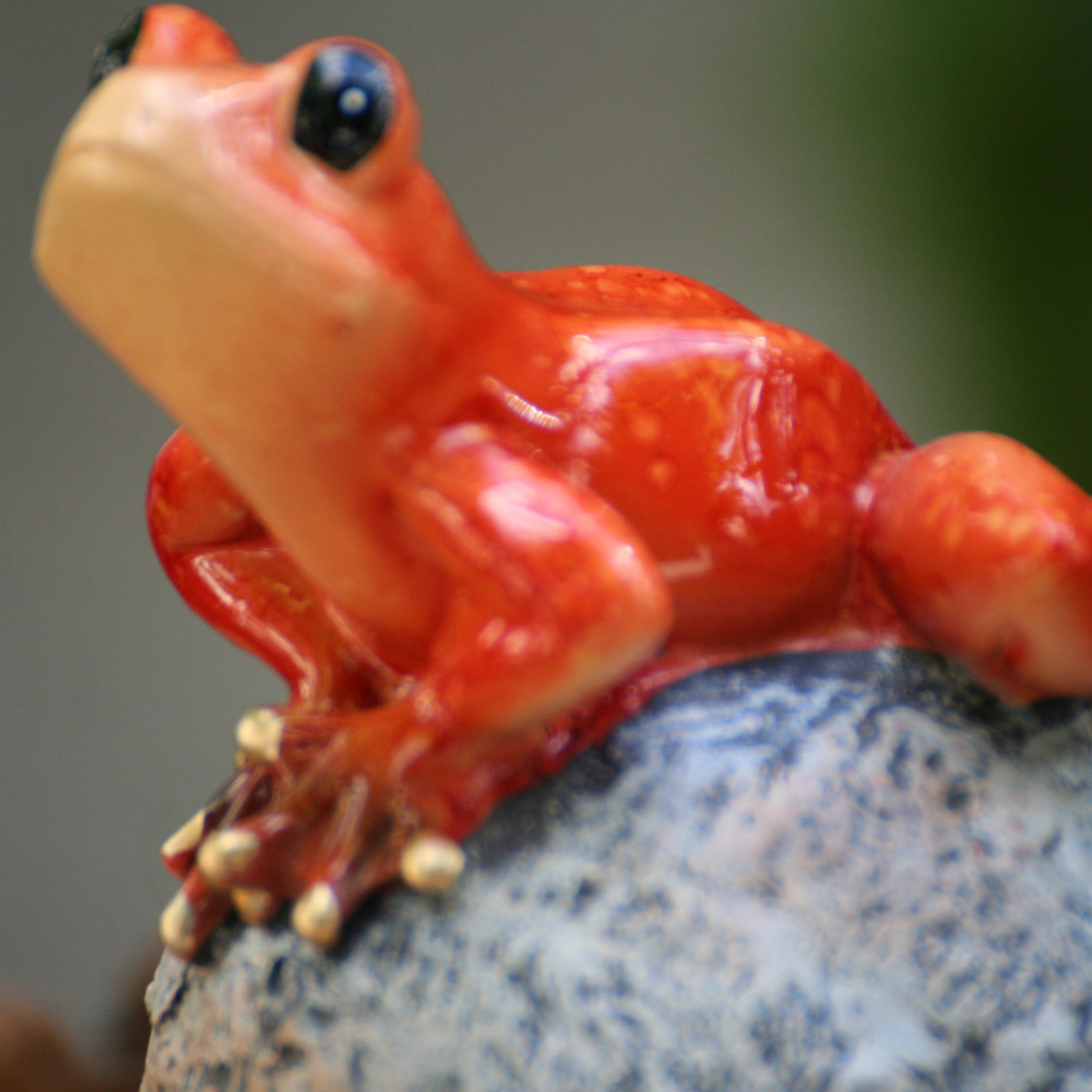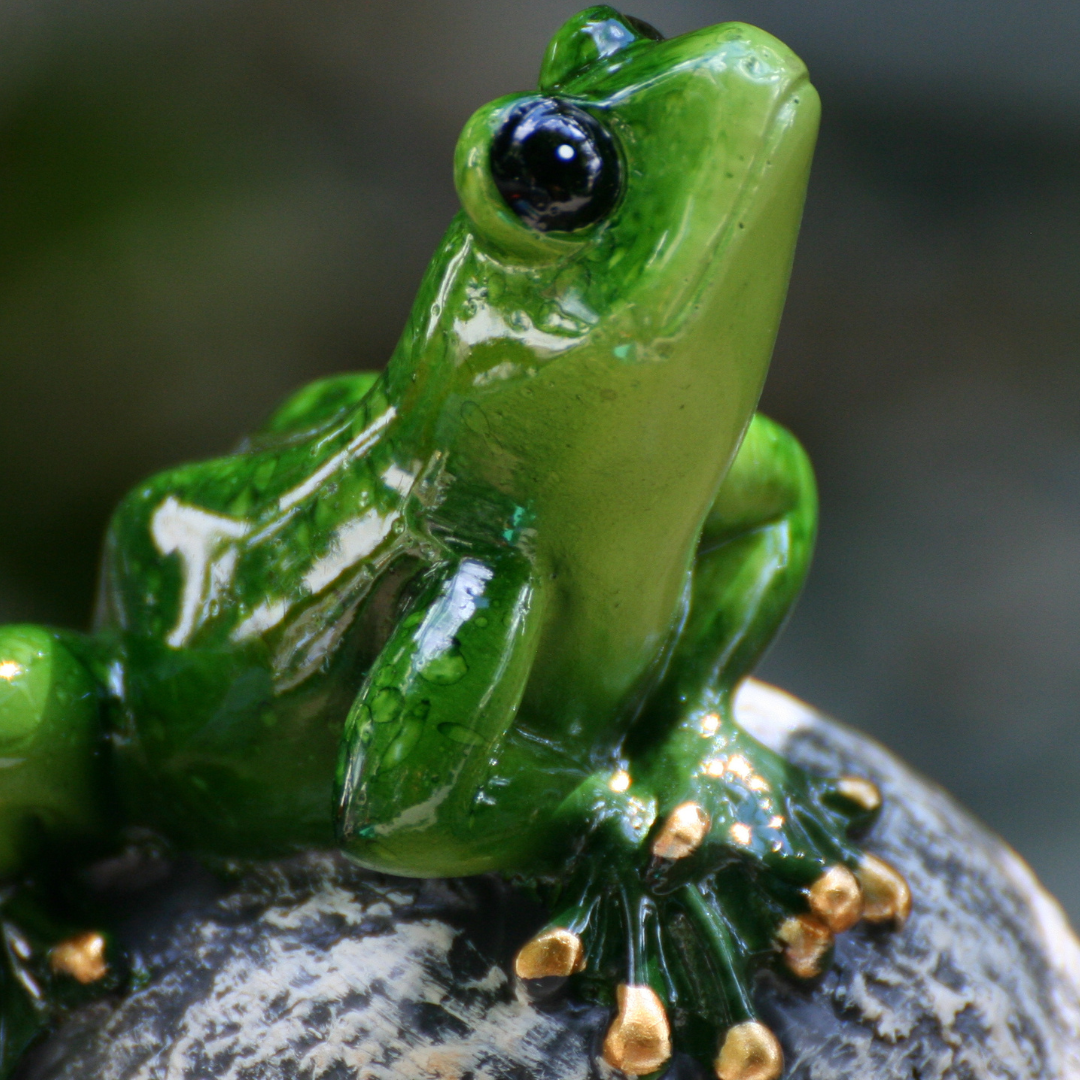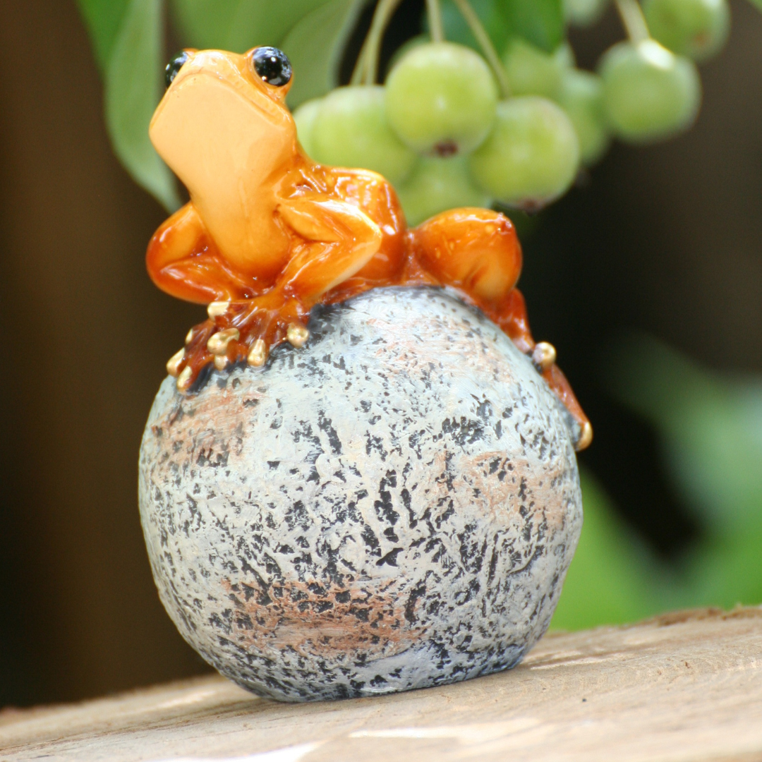 Unsere Frösche sitzen wie Könige auf ihrer Kugel. Sie sind in leuchtenden Farben und glänzendem Finish im Außenbereich sowie auch im Innenbereich zur Dekoration geeignet.